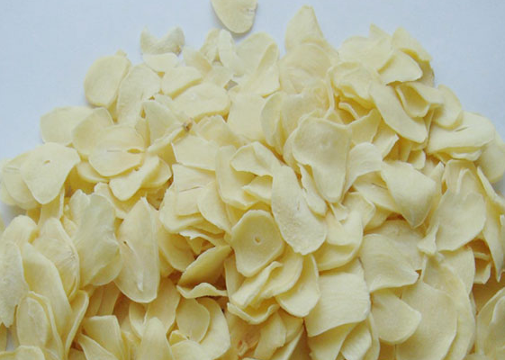 七、分選包裝:將干蒜片按完整度進行過篩分級,去除少許碎蒜片,將合格的蒜片裝入塑料袋內包裝,用紙箱外包裝處理后,貯藏于干燥、涼爽、通風的倉庫內。