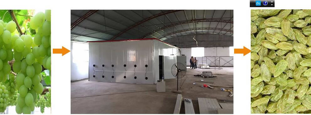 葡萄干是葡萄經過干制后的干果,葡萄干能促進人體健康,干果連皮一同吃,纖維素一點也沒浪費。傳統的干制過程是將提子裝入曬盤,在陽光上曝曬10天左右,至三分之二的果實呈干燥狀,用手捻果實無提子汁液滲出時,即可將曬盤疊起來,陰干一星期。在晴朗的天氣下,全部干燥時間共約20~25天。這種干制后方法優點是幾乎不消耗能源,但干制周期長,人員勞動強度大,衛生條件難以保證,產品質量差,干制不均勻等缺點,使用空氣能熱泵葡萄干烘干機可替代傳統的烘干方法。烘干過程流失的主要是水分,較大限度的保留水果的原風味、色澤和營養,使烘干后的成品口感好、色澤好、營養保留完整,真正達到了自動化程度高、封閉式運行、節能環保、適應產品范圍廣,是水果蔬菜烘干設備的理想選擇。